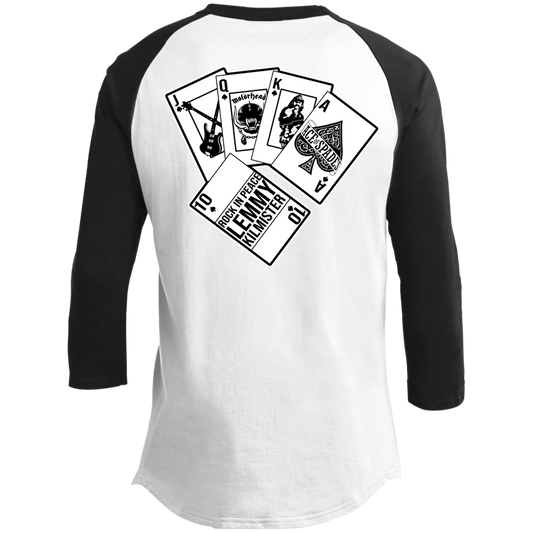 ArtichokeUSA Custom Design. Motorhead's Lemmy Kilmister's Favorite Video Poker Machine. Rock in Peace! 3/4 Raglan Sleeve Shirt