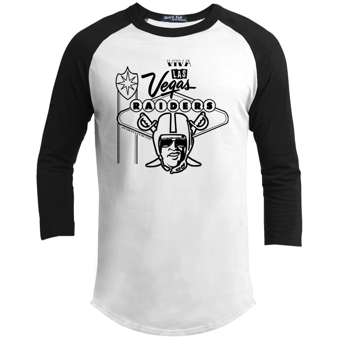 ArtichokeUSA Custom Design. Las Vegas Raiders. Las Vegas / Elvis Presley Parody Fan Art. Let's Create Your Own Team Design Today. Youth 3/4 Raglan Sleeve Shirt